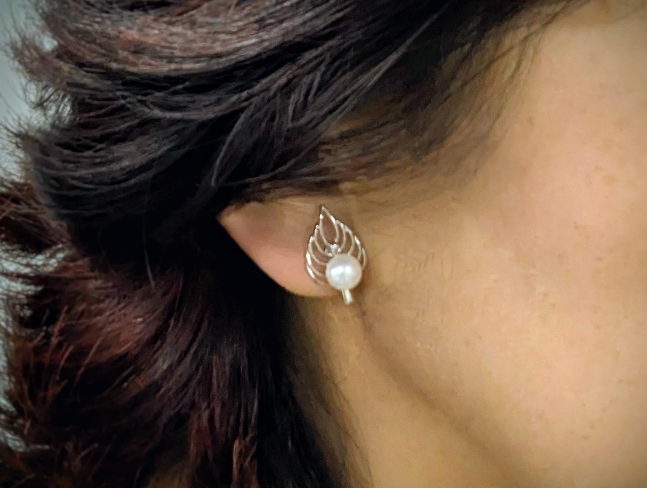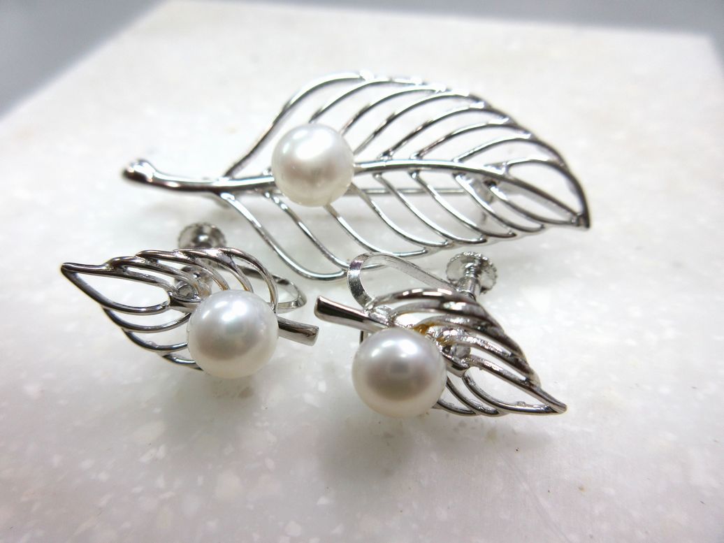 Sivler と パールの 葉っぱブローチ & 葉っぱイヤリング [ES-5290BchEr-1383]