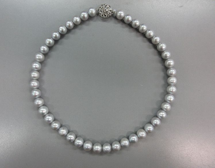 思いがけないくらいおしゃれなライトグレーのパール・ネックレス