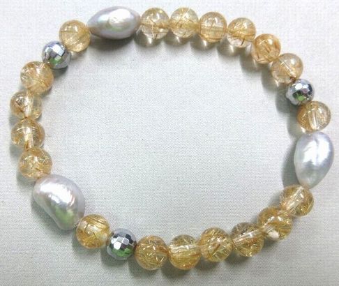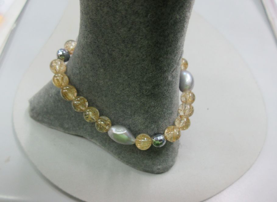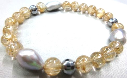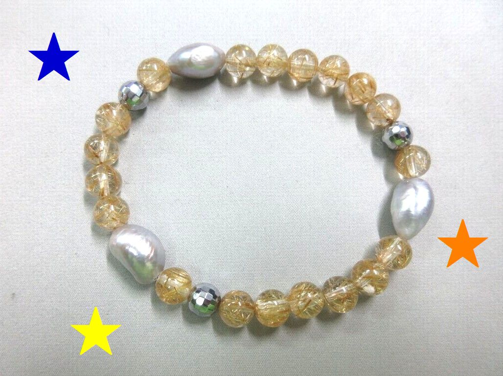 | 素材 | ルチルクォーツ、淡水パール(シルバーカラー・処理色)、オニキス(ジルバーコーテッド) |