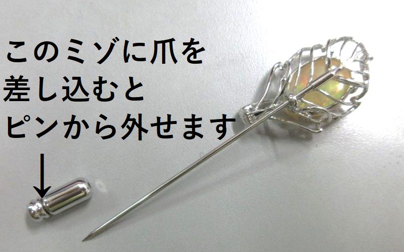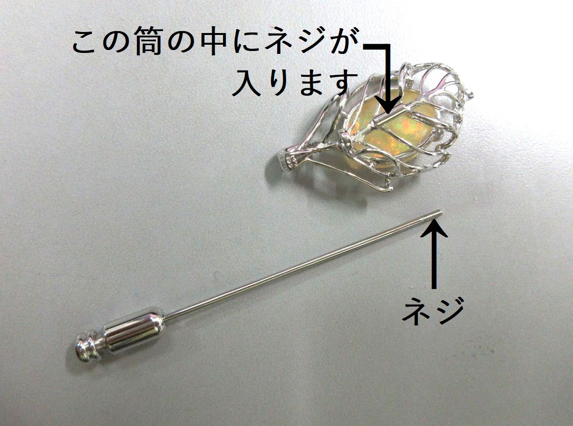ネジでピンブローチのピンが、はずれるようになっています。