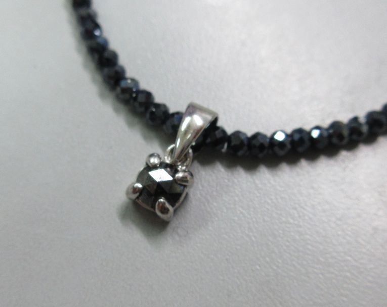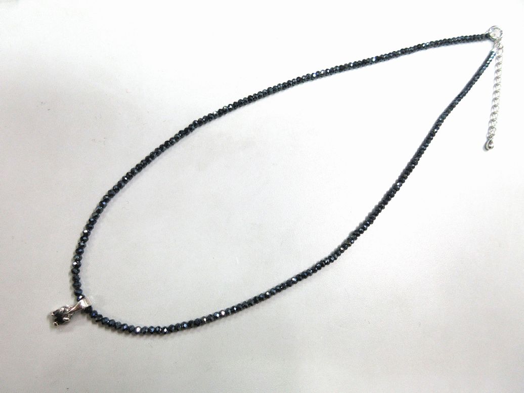 | 素材サイズ | ブラックダイヤモンド(処理):1石 0.3ct up, ブラックスピネル(コーテッド)約2mm x 42.5cm, Silver925(ロジウムメッキ) |