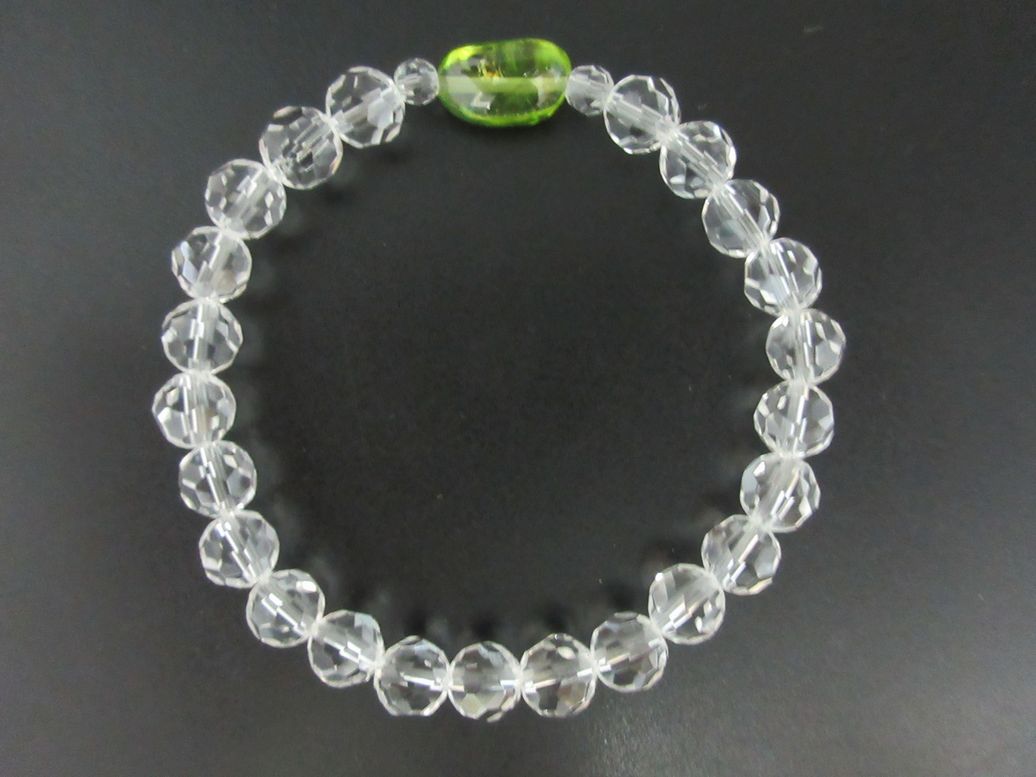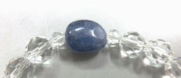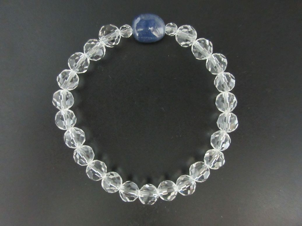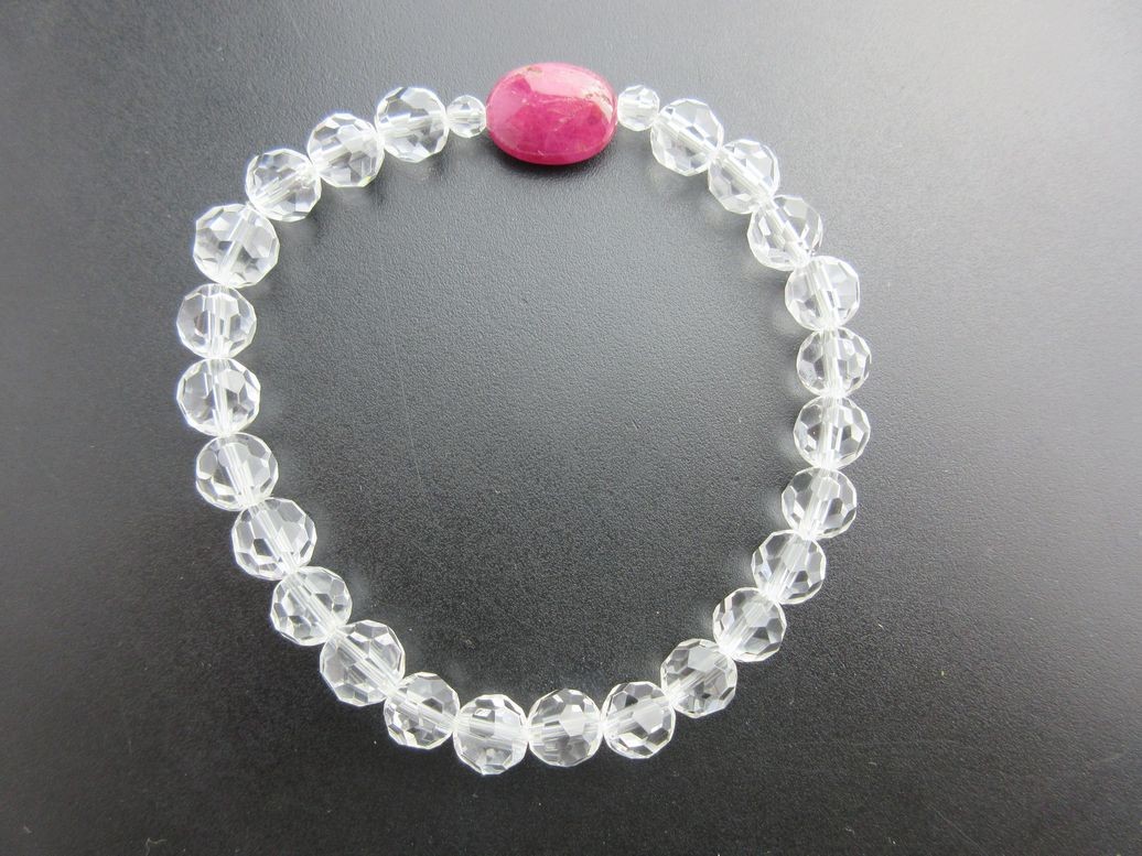 宝石を主役として引き立てるため、シンプルに天然水晶の7mmカット玉でつなぎました。