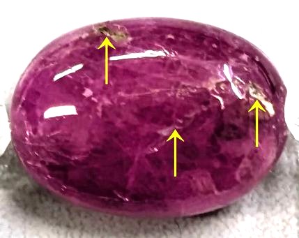 ルピーは、原石の段階にあった凹みや穴が、みがいたあとも表面に残ったところがあります。