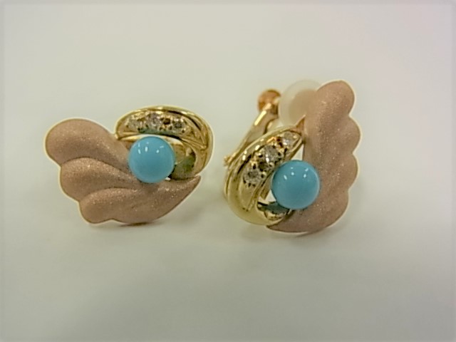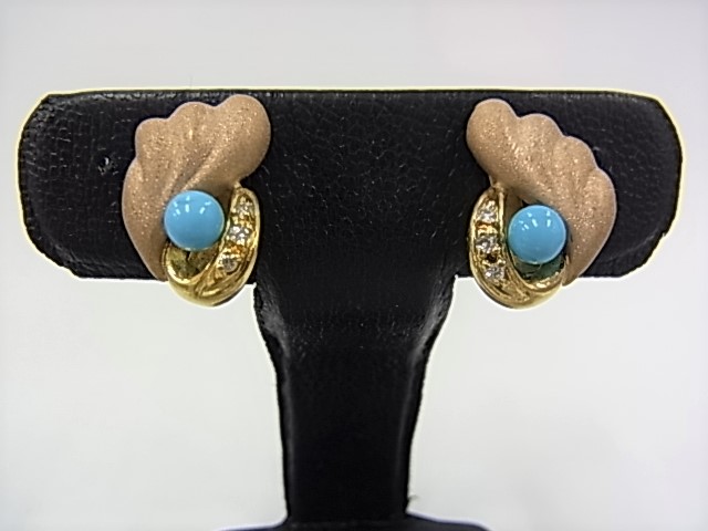 K18ダイヤ入 天然トルコ石 デザイン イヤリンク゛ [SH-Er9160-SB-849]